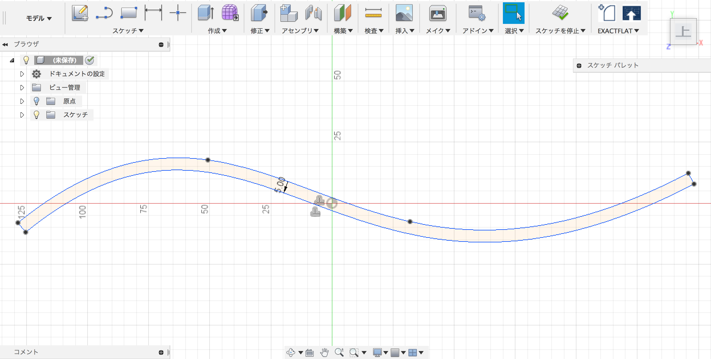 まず、曲面の元になるスケッチを作成します。