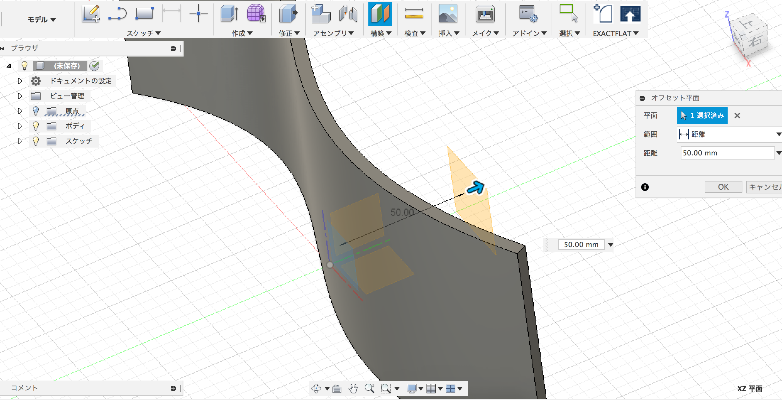 続いて、「構築 > オフセット平面」で、少し離れた場所に作業面を作ります。